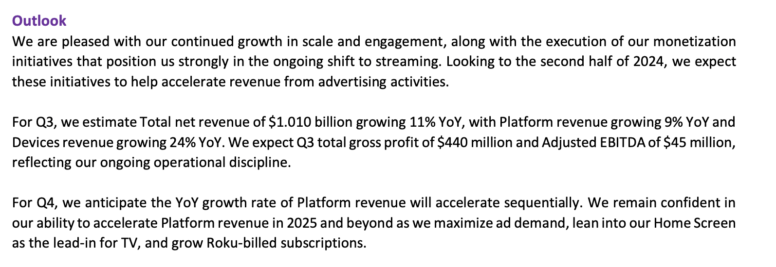 Roku outlook commentary (Roku Q2 shareholder letter)