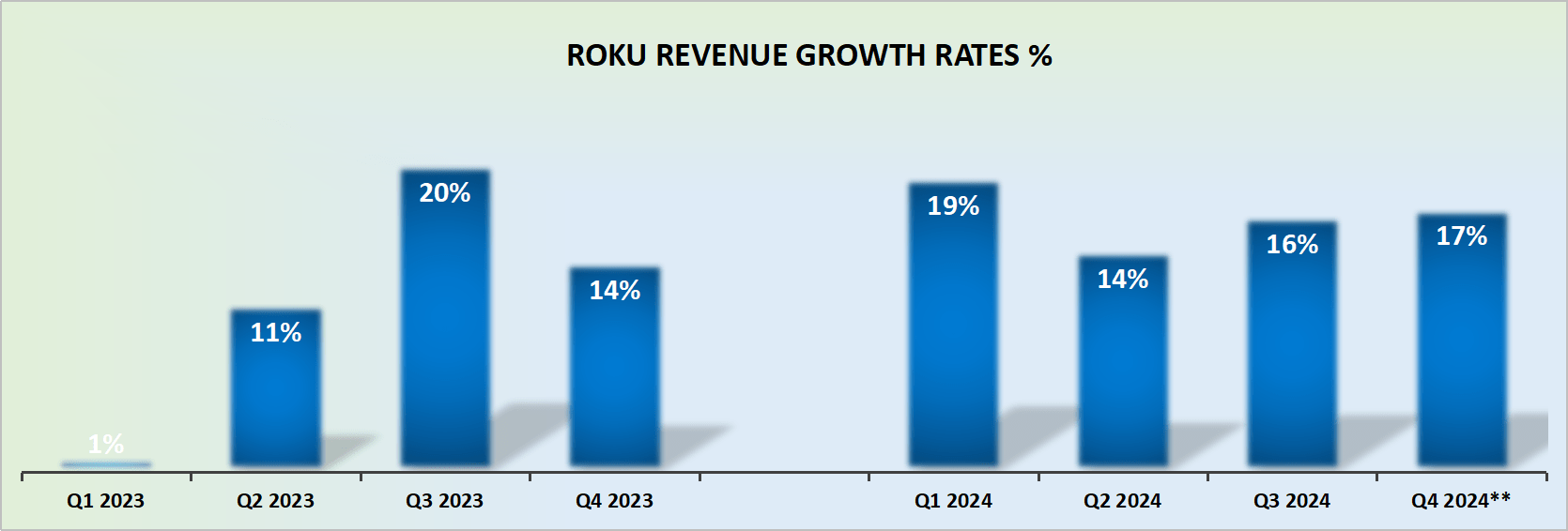 The bad news is that next year’s comparables will be tough, which probably translates into Roku growing at 15% CAGR and no more, which will mean a deceleration from 2024. On top of that, recall that in 2025 there will be no election-advertising tailwinds.