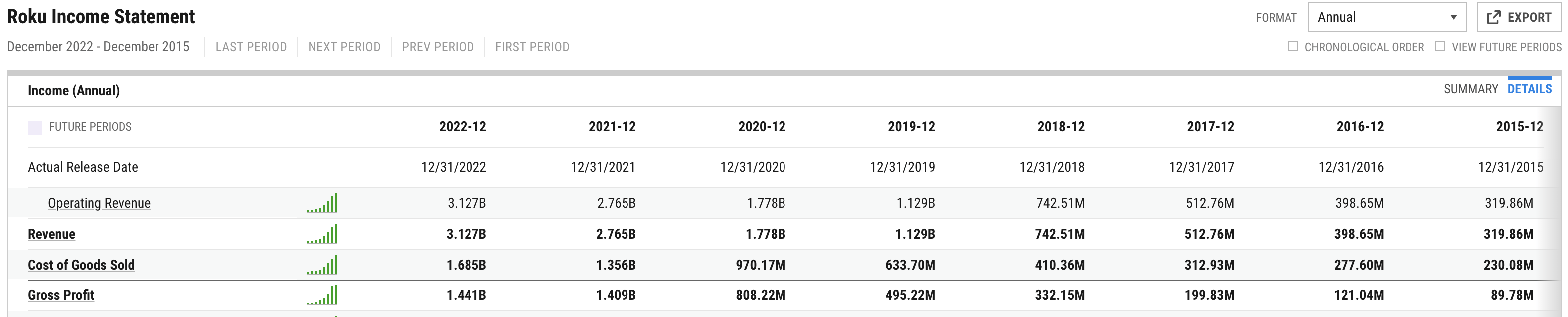 Over the last 8 years, Roku’s top line sales have 10x’d and its gross profits have more than ~15x’d.