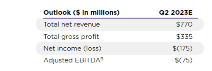 Roku guided to Q2’23 revenues of $770 million for some solid sequential growth, though revenues are targeted at only 1% growth YoY. Investors won’t necessarily like the adjusted EBITDA target for a loss of $75 million, growing from the $69 million loss in Q1.