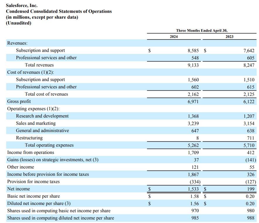 Condensed Consolidated Statements Of Operations (Salesforce)