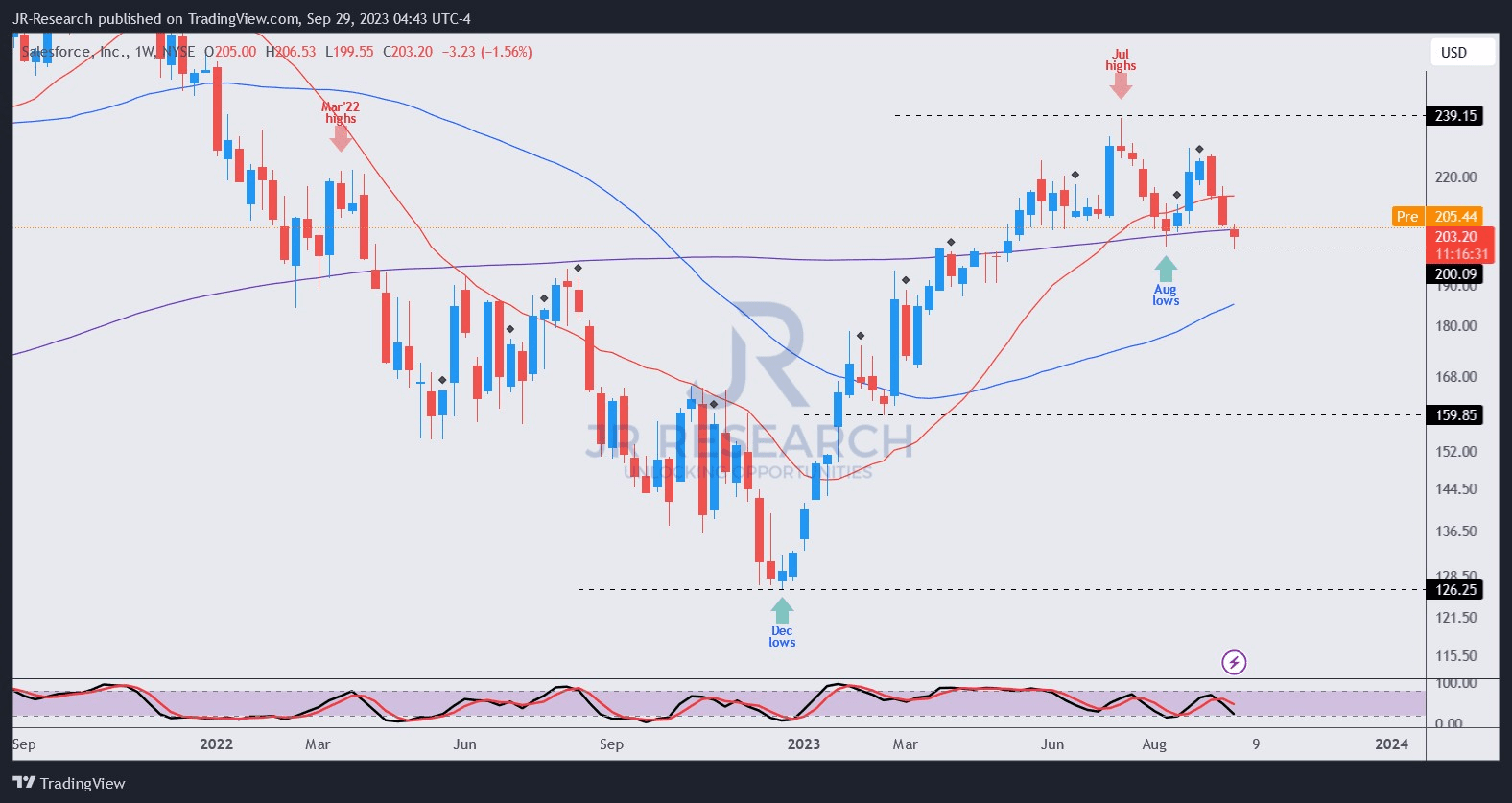 CRM price chart (weekly) (TradingView)