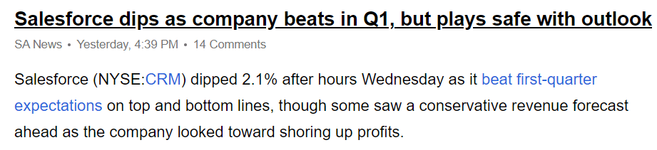 With CRM already falling sharply during pre-market hours, it seems that the market is still fixated on the company’s old paradigm – revenue growth no matter the cost.
