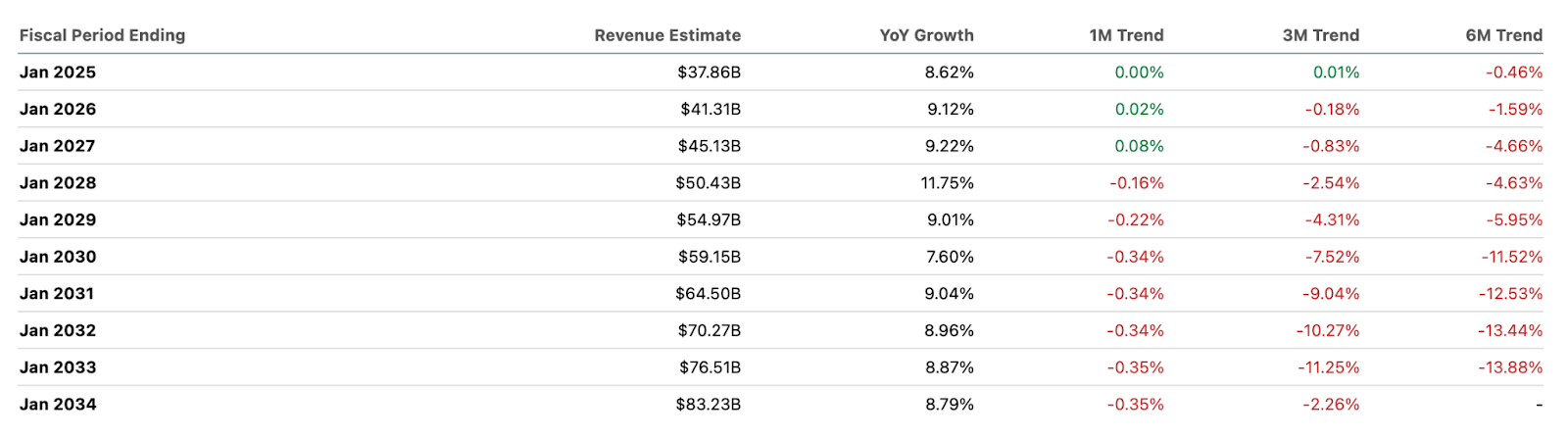 Despite a robust FY Q2 earnings report, where they beat estimates with $9.33 billion in revenue, the 8.39% revenue growth marks the slowest pace in over a decade.
