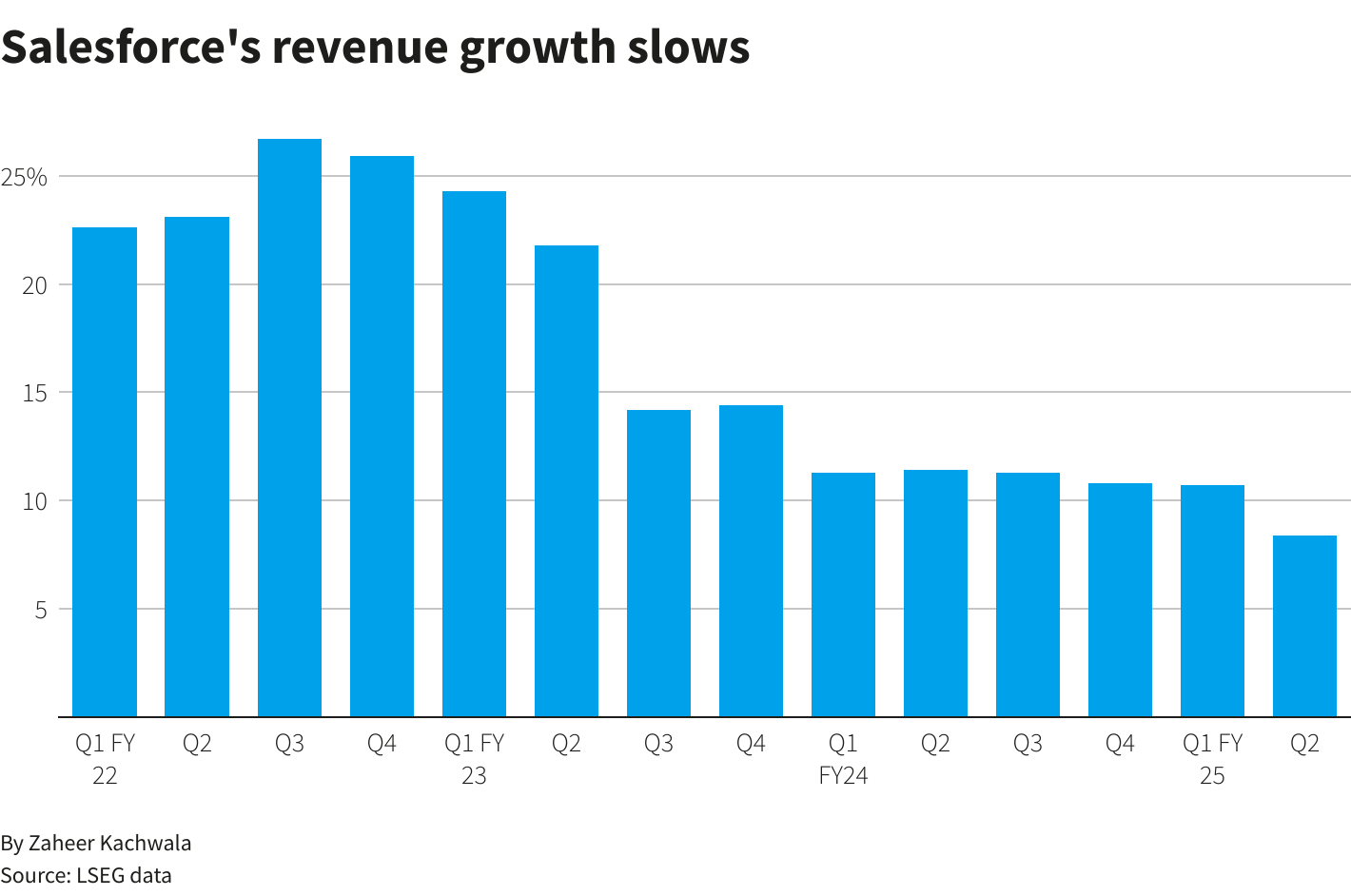 Their growth, while steady, has slowed, particularly as enterprises start to evaluate AI challengers that claim to offer better service in their AI driven CRMs.