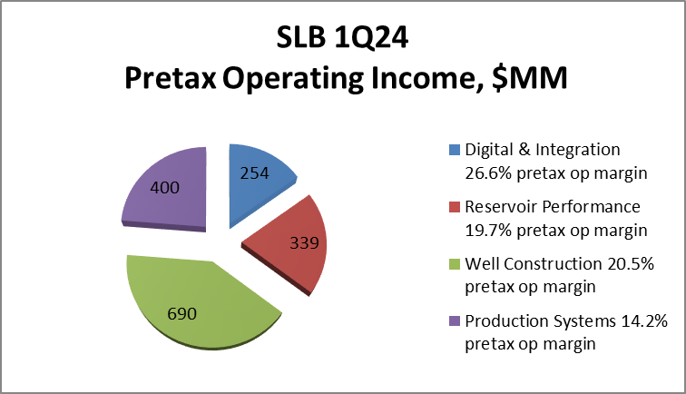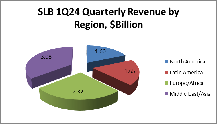 • Schlumberger is less significantly impacted than its competitors by the big drop in US rigs because its focus is more international.