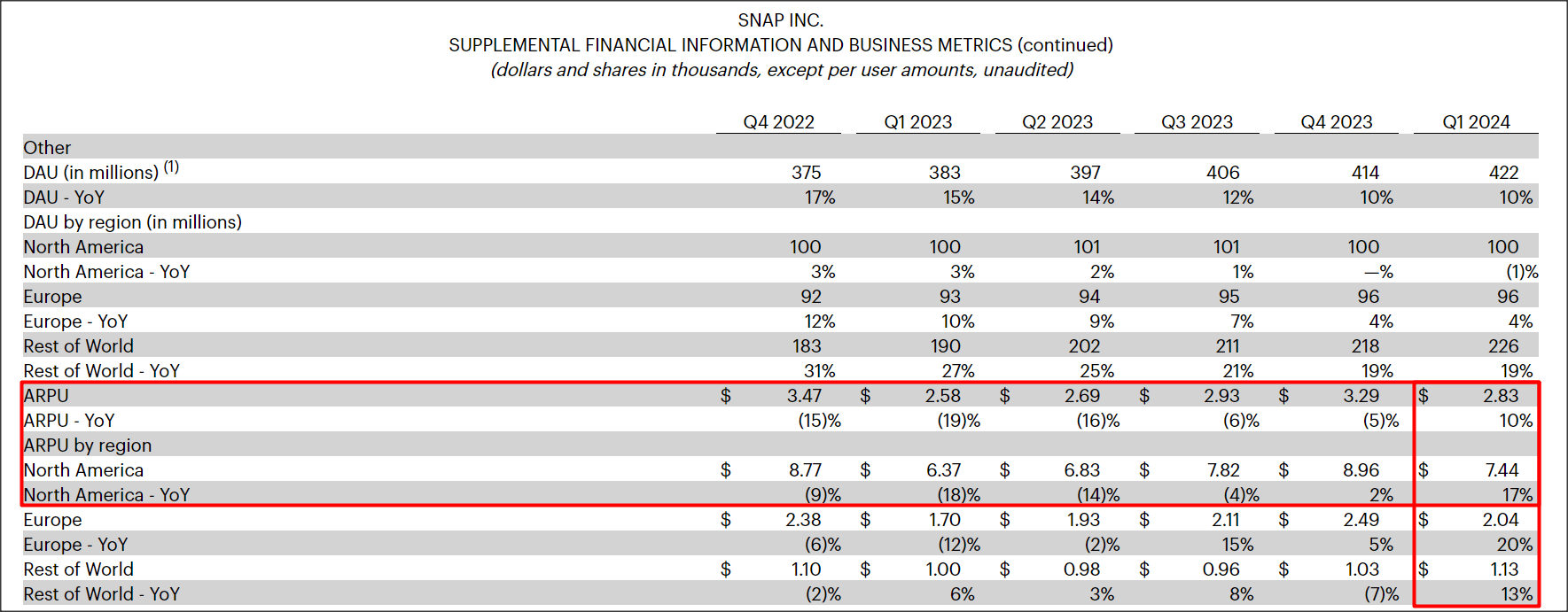 • The company’s paid subscription service, Snapchat+, showed consistent growth, adding 2 million new paid subscribers in the last quarter.