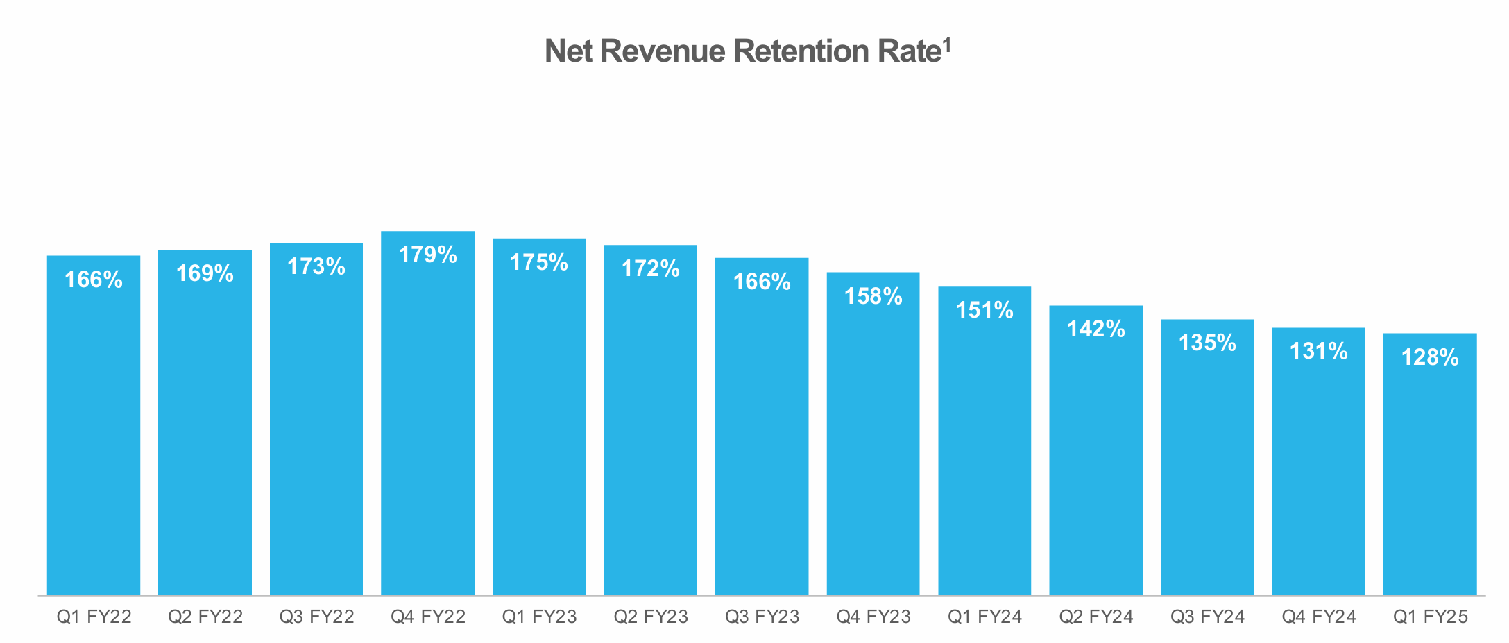 We continue to see operational metrics remain strong with Snowflake’s net retention rate at 128% for the FY1Q25 quarter.