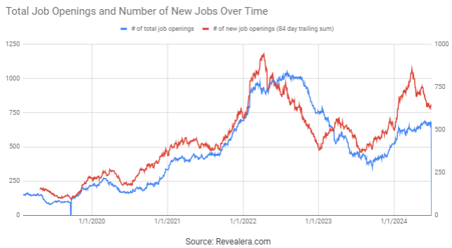 Snowflake’s hiring surge in late 2023 and early 2024 was likely driven by expansion of its salesforce and attrition. The number of Snowflake job openings has moderated in recent months though, which should be supportive of margins going forward. It also potentially suggests that the demand environment has continued to soften.