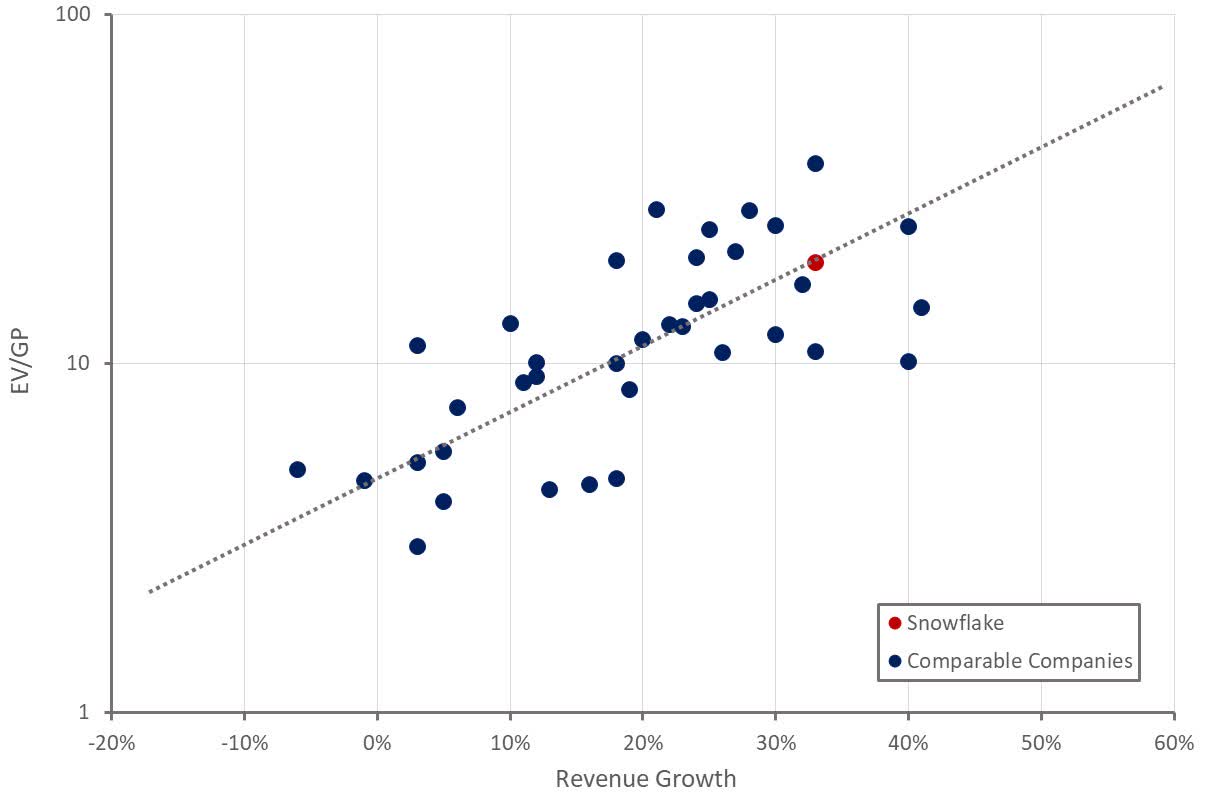 Figure 14: Snowflake Relative Valuation (source: Created by author using data from Seeking Alpha)