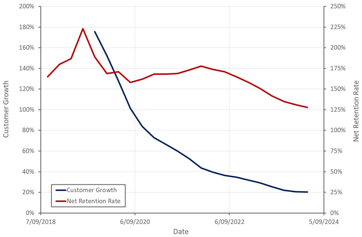 Snowflake’s net retention rate and growth of the company’s customer base continue to moderate.