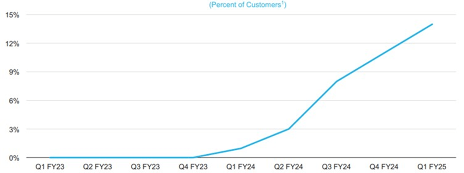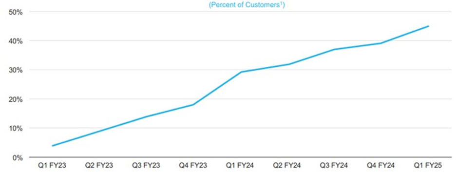 Over the past few years Snowflake has expanded from a cloud native analytical database for structured data to a more general-purpose data platform. Snowflake’s initial focus was on creating data gravity by enabling collaboration and the company has had success in this area, with nearly one third of Snowflake customers sharing data products as of Q1 2025, up from 24% 12 months ago.