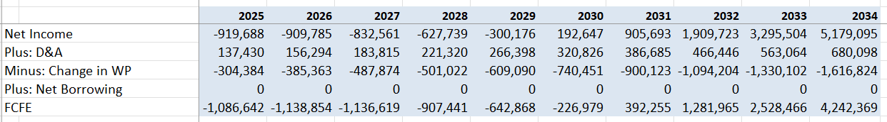 The free cash flow from equity is calculated as follows: