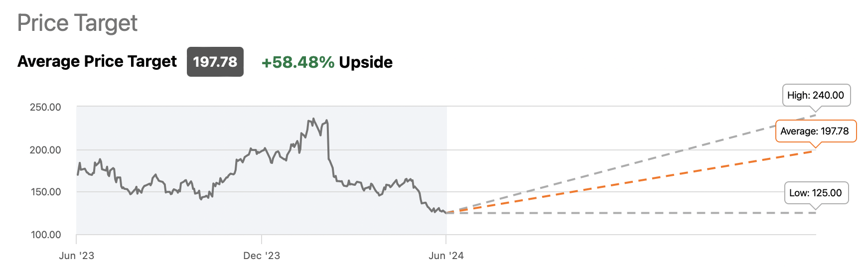 Snowflake trades around the low “rock-bottom” end of its price target estimates. The average price target on Wall St. is around $198, representing a solid possibility of around 60% upside in the next twelve months. Moreover, higher-end price targets go up to roughly $240, implying that the stock could approximately double over the next year.