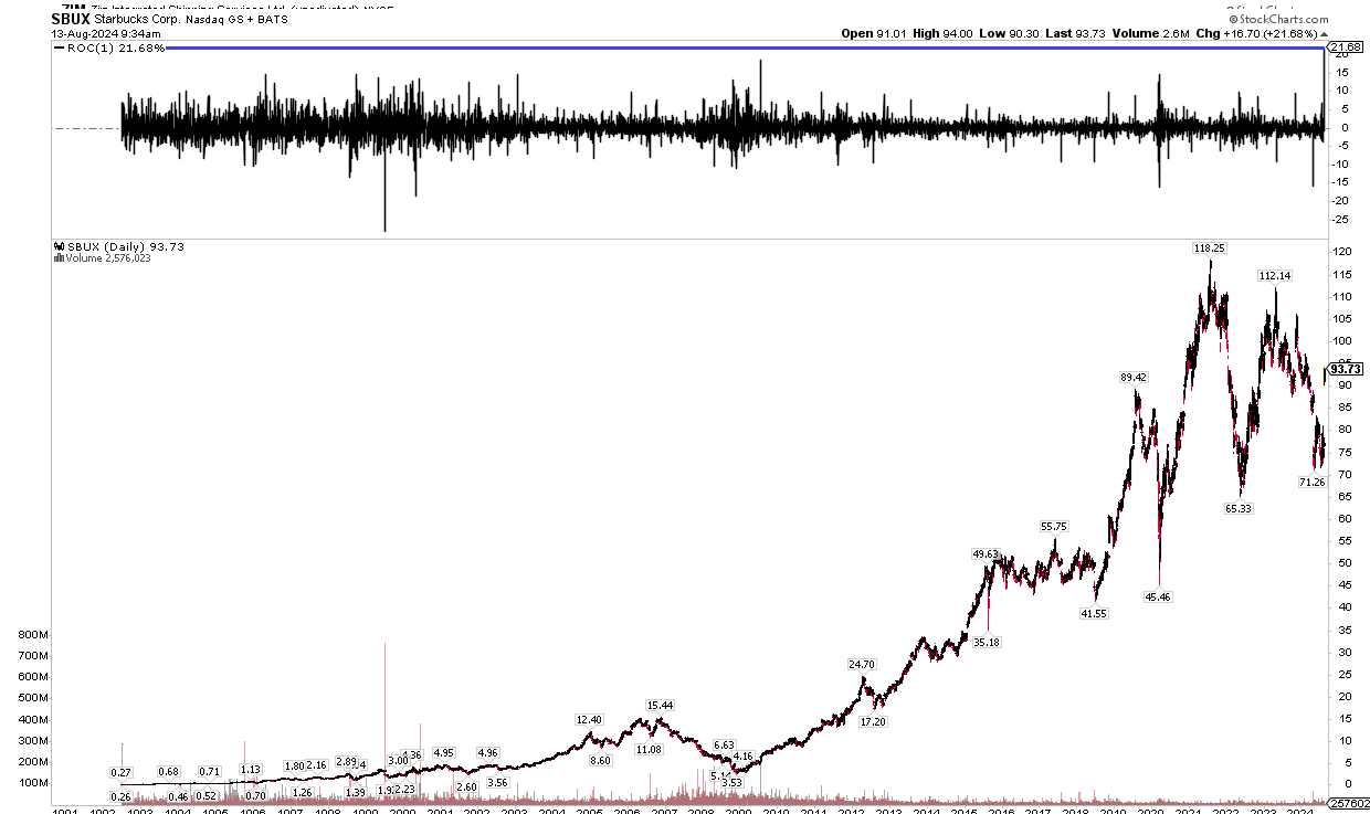 Starbucks (NASDAQ:SBUX) had its best day ever when it was announced that Chipotle’s (CMG) CEO Brian Niccol would become its new chief executive. Shares soared 22%, but the rally merely brought SBUX back to where it traded in Q1 of this year. The Niccol-honeymoon period is ongoing, but macro headwinds remain in place. Weakness in China and concerns regarding the Seattle-based company’s domestic strategy are in play.