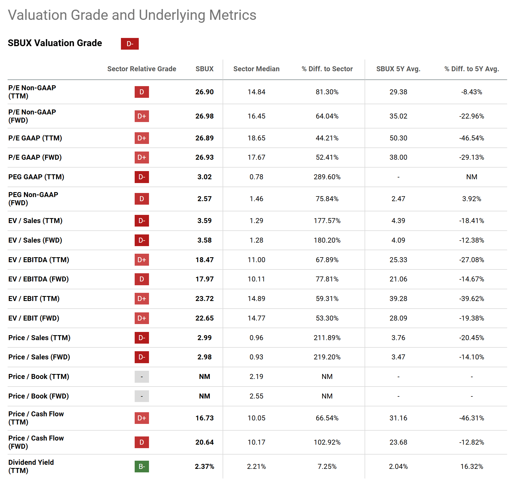 • The multiple may appear expensive, but Starbucks’ shares are cheaper than historical averages, and anticipated growth under Niccol makes the current price reasonable.