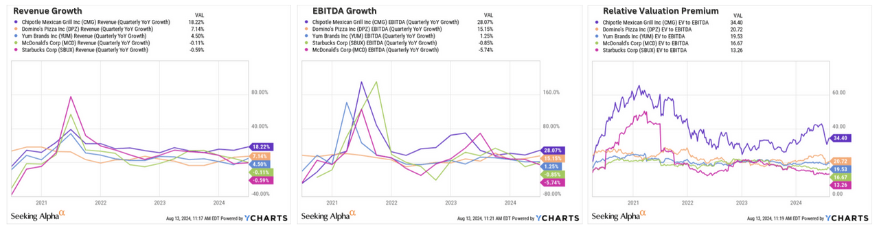Exhibit D: Chipotle’s growth rates versus its valuation multiples compared to industry peers (YCharts)