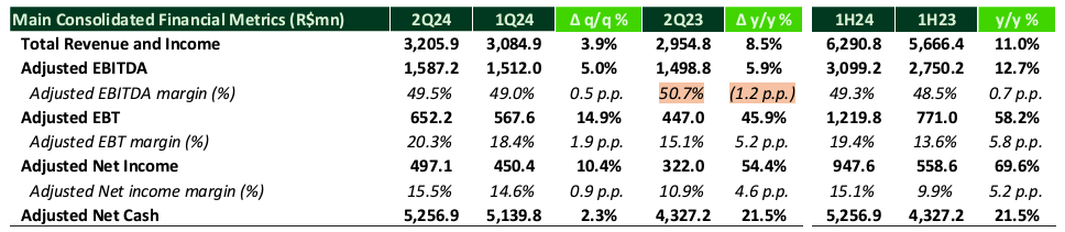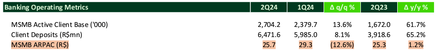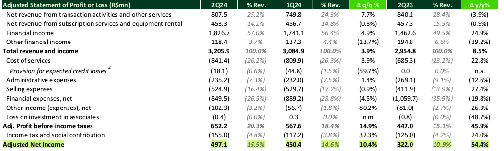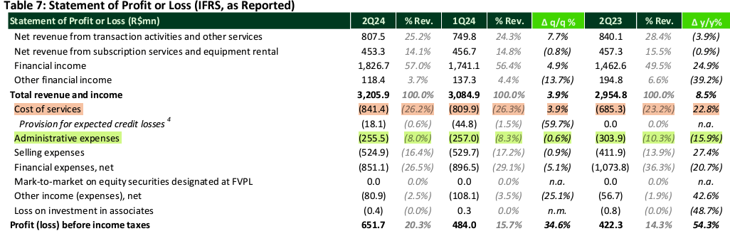• StoneCo’s 2Q24 results showed an 8.5% YoY revenue increase, but significant cost hikes and higher NPLs raise concerns about future profitability.