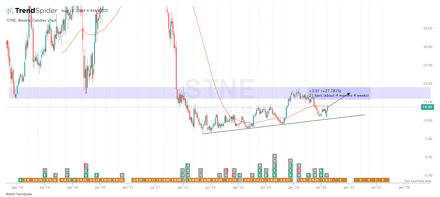 TrendSpider Software, STNE Weekly, Oakoff’s Notes (Weekly Chart – 52MA Weekly Added)![TrendSpider Software, STNE weekly, Oakoff's notes [weekly chart - 52MA weekly added]](https://static.seekingalpha.com/uploads/2024/8/16/53838465-17237978416992254.png)