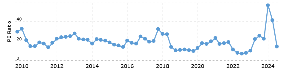 SMCI Long Term P/E Ratio (Macrotrends.net)