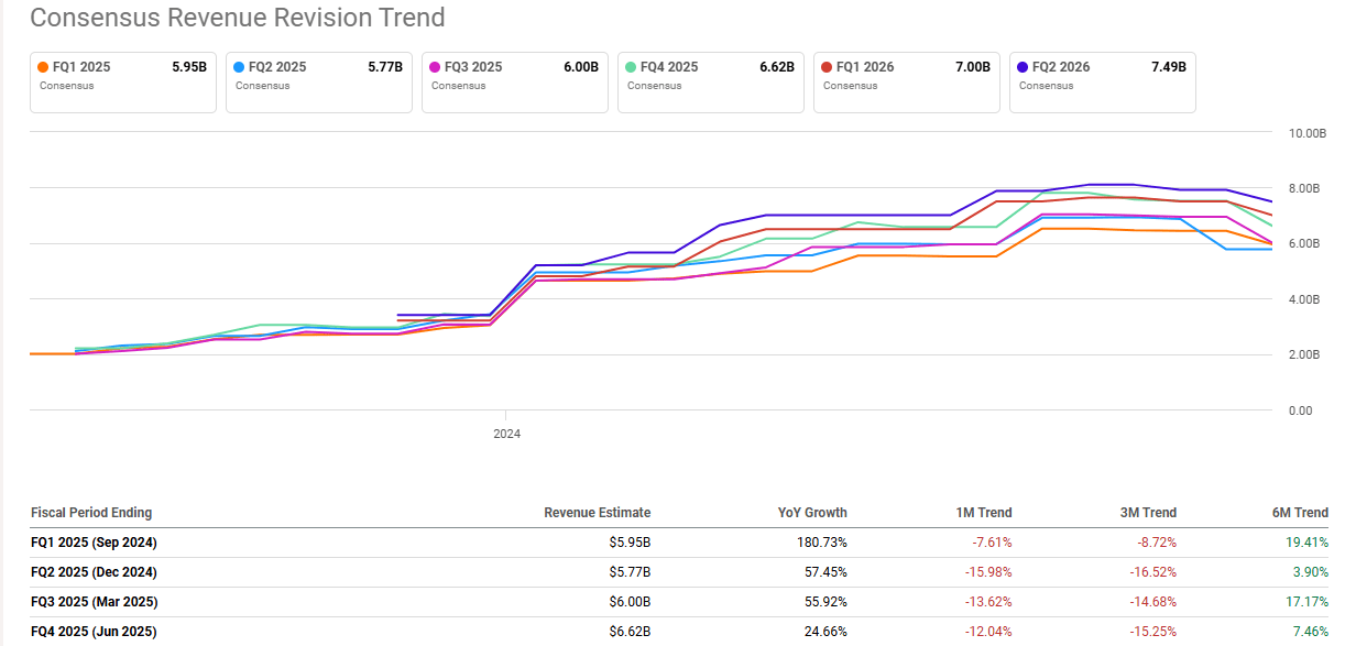 • Despite a low valuation after the rally, SMCI’s stock should be heavily discounted due to these uncertainties. I expect more visibility in the next earnings release before reconsidering my rating.