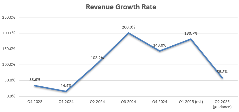 As such, I project the company will deliver around $24 billion in total revenue for FY25, assuming $6 billion in Q2, $6.2 billion in Q3, and $6.35 billion in Q4. The growth assumption is based on a gradual product ramp-up of Blackwell chips.
