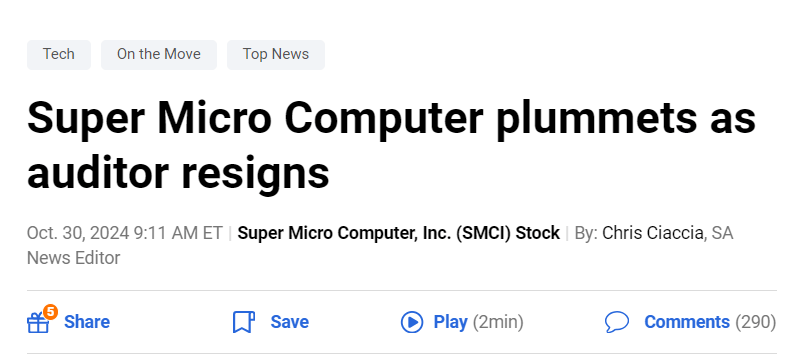 I began covering Super Micro Computer, Inc. (NASDAQ:SMCI) stock here on Seeking Alpha in early December 2022, initially assigning a “Strong Buy” rating. However, by June 2023, I downgraded it to a “Hold.” At one point, I reconsidered my stance and upgraded the rating, but in mid-September 2024, I downgraded it once more, citing concerns about the company’s potentially “shaky situation” despite the hefty dip it experienced since early 2024. Today’s news and the subsequent price action have validated my decision, as the stock has plummeted over 30% in a single trading day.