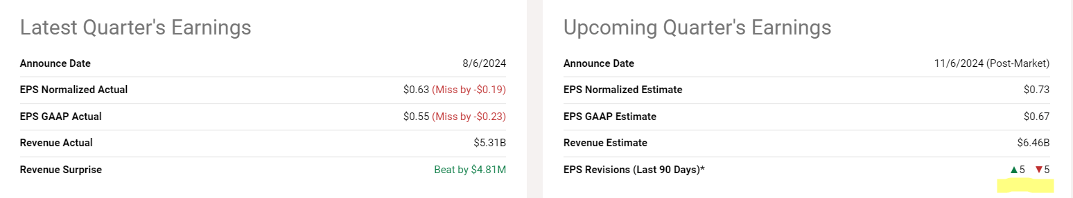 Another reason for my skeptical (if not negative) attitude toward purchasing Super Micro stock during its current dip is the discrepancy between analysts’ forecasts and the information emerging from the market. After a disappointing report for the last quarter, analysts are divided on what to expect for the upcoming quarter. SMCI is set to report on November 6 for its fiscal Q1 FY2025. Notably, EPS forecasts for this quarter have increased over the past six months but have barely changed in the last month, indicating that optimism still prevails in the market regarding expected EPS and the company’s ability to manage its margins.