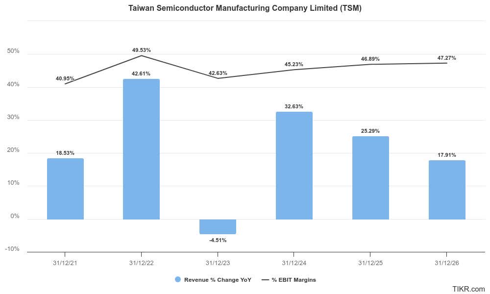 The foundry expects to deliver Q4 revenue between $26.1B and $26.9B. Wall Street estimates on TSMC have been lifted to reflect its upgraded outlook. Despite that, analysts expect revenue growth to decelerate through 2026, suggesting some pessimism has been priced into the stock.