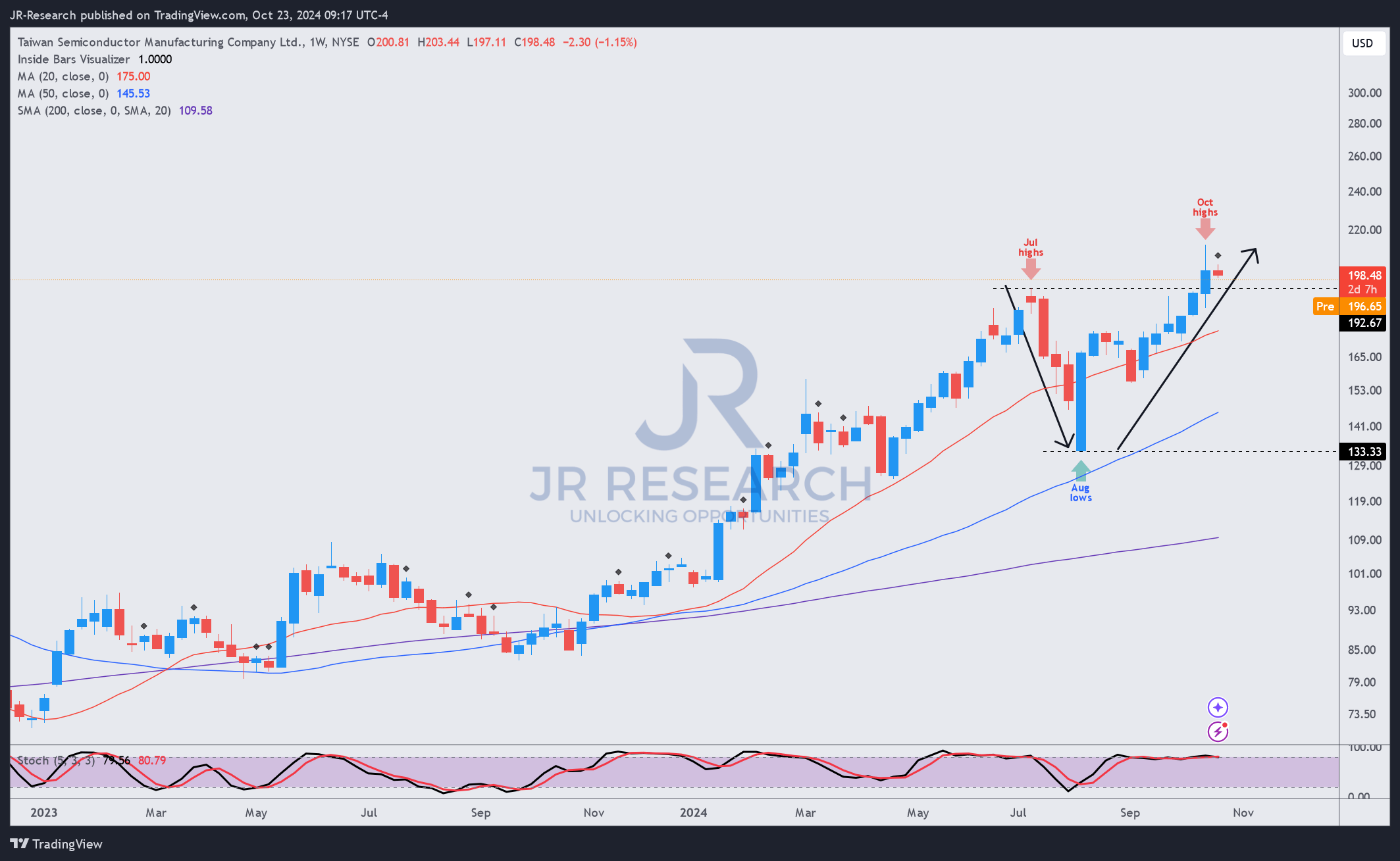 TSM’s price action demonstrates a clear uptrend bias, with a potentially decisive breakout above its July 2024 highs. While still early, more conservative investors can consider assessing for a possible pullback to determine the subsequent consolidation levels.