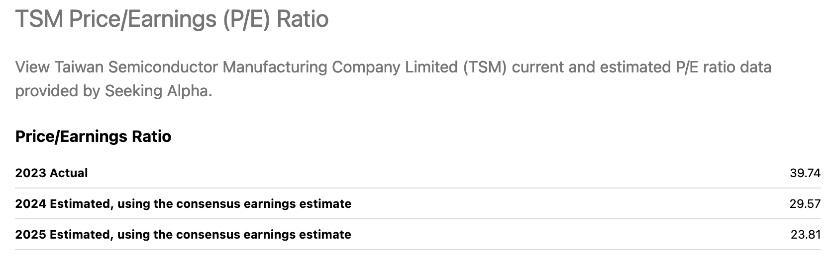 Exhibit F: Taiwan Semi’s earnings multiples through 2025 (Seeking Alpha)