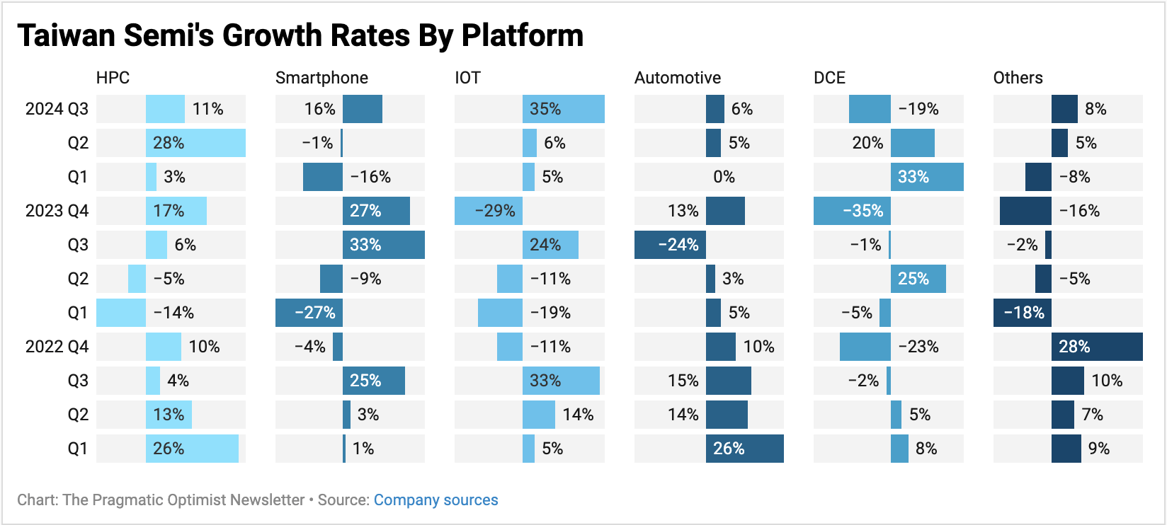 Taiwan Semi dominates the market for fabrication of advanced chips with a 90% share, and the Q3 results manifested the strength of its market dominance, with the HPC segment continuing to grow.