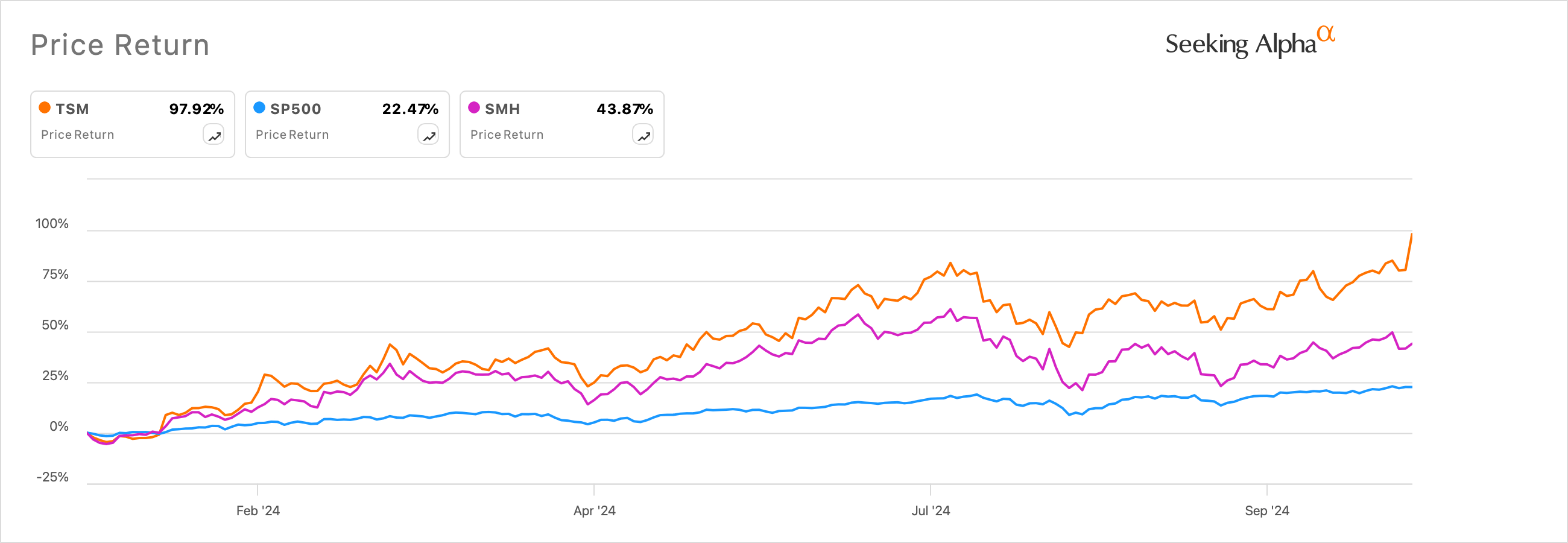 Exhibit A: Taiwan Semiconductor’s stock is up almost 100% this year. (Company filings)