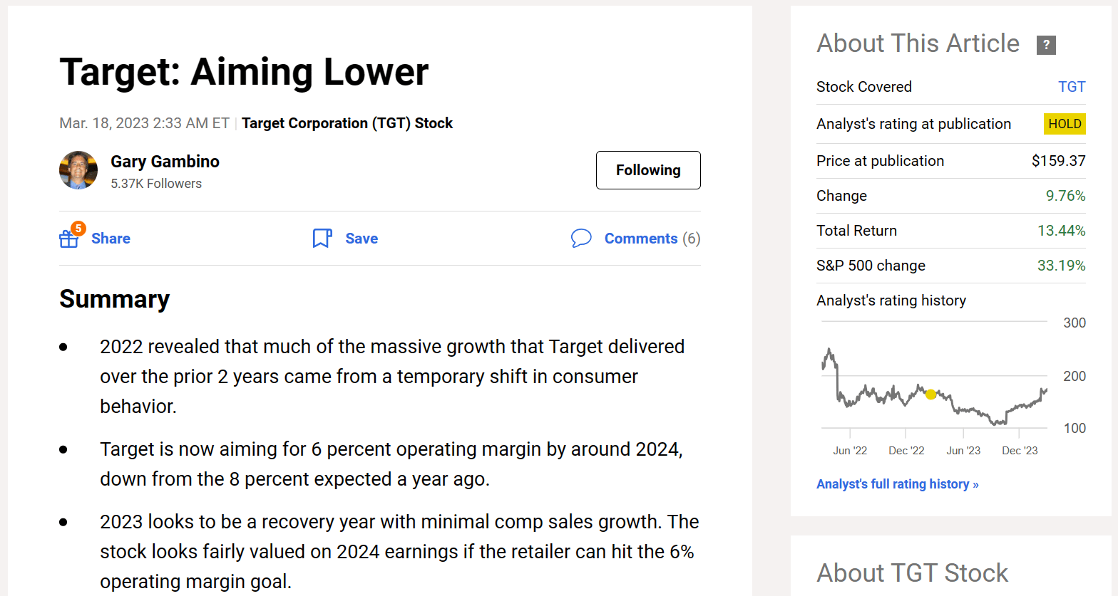 - Target is returning to the slow, steady sales growth and 6% operating margins that prevailed before the unsustainable growth spurt of 2020-21.