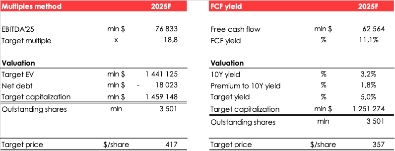 Because Tesla now is one of the best-selling cars not only among EVs, but also among classic cars, we have decided to revise the basic multiple for Tesla, using the basic multiples of major traded companies in the auto industry (GM, Ford and Toyota) as a basis. As a result, we are lowering the basic multiple for Tesla from 15.2хto 9.75х. This approach makes the valuation more «market-based» and removes a wide gap between the valuations that are based on the EV/EBITDA method and the free cash flow (“FCF”) Yield method.