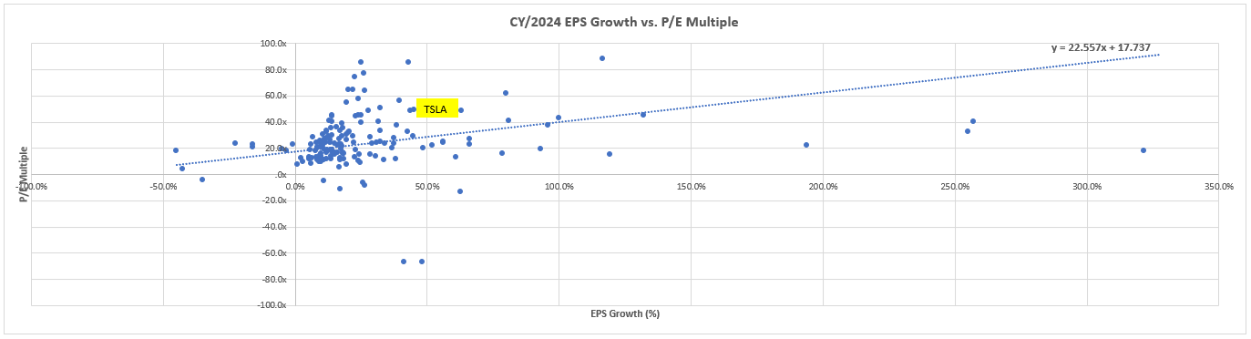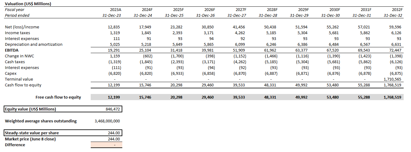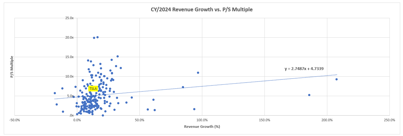 Based on the discounted cash flow (“DCF”) analysis on projected cash flows taken in conjunction with our fundamental forecast for Tesla, with the application of an 11.6% WACC in line with the company’s capital structure and risk profile, the stock’s current price at about $244 apiece implies an 8% perpetual growth rate. This prices in future growth that exceeds the pace of economic growth across Tesla’s key operating regions, representing a significant premium attributed to its market leadership and prospects in the global transition to electric.