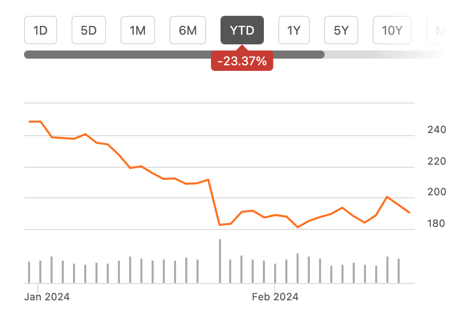 Since I wrote about the electric vehicle [EV] giant Tesla, Inc. (NASDAQ:TSLA) last November, its share price is down by ~19% and even more year-to-date [YTD] (see chart below). No surprises there, given that a slew of factors were working against during at that time.