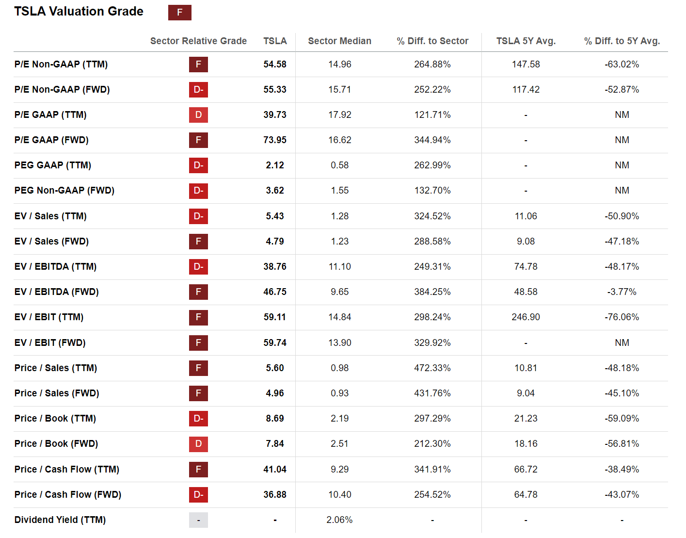 Without the positive sentiment that carried Tesla’s sky-high valuation for multiple years, the stock could be vulnerable for a sharp rerating, potentially trading down to the valuation of a typical GARP asset.