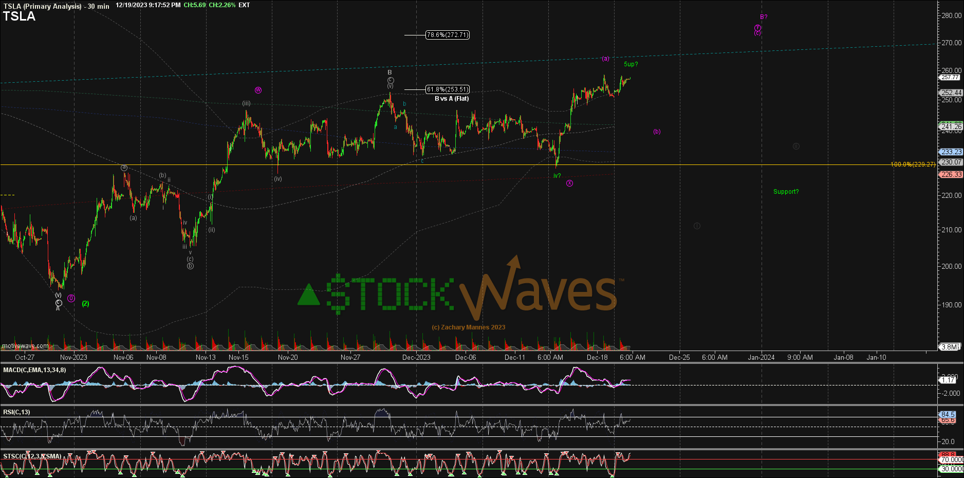 Note that her work will often overlap and complement our own methodology that uses Elliott Wave Theory. As you can surmise from her post, TSLA is indeed at a key juncture in the near term. Where will it go next? Price is the ultimate arbiter of that question. We have our specific levels to determine likelihood.