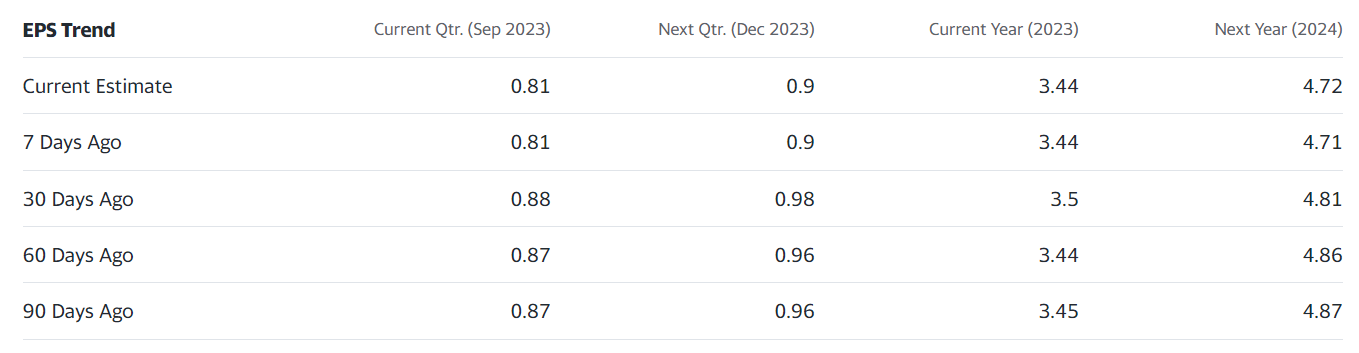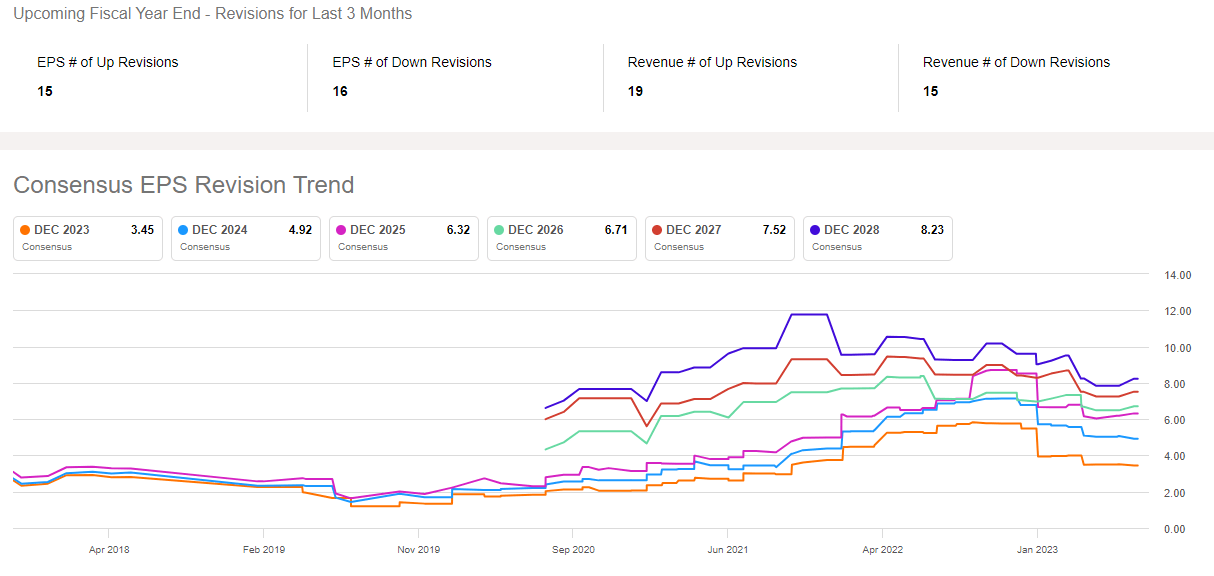 - Estimates: Now that 2023 is at the half-way mark, estimates for the year have more or less remained the same. 2024’s estimates have fallen from $4.88 during my last review to $4.72 now, a 3.50% reduction. So, this has gotten slightly worse. (Gotten Worse #4)