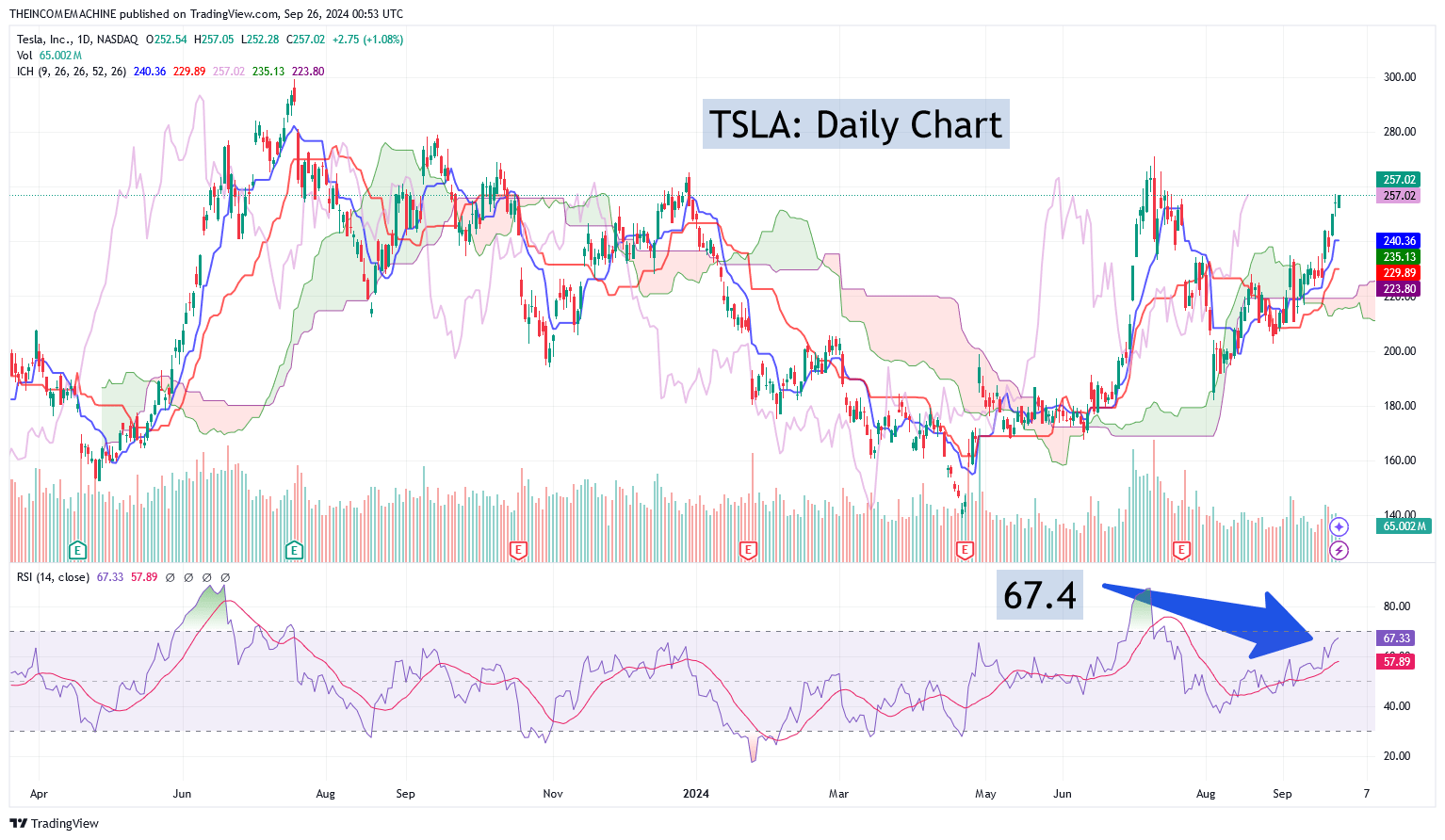 TSLA: Daily Price Chart (Income Generator via TradingView)