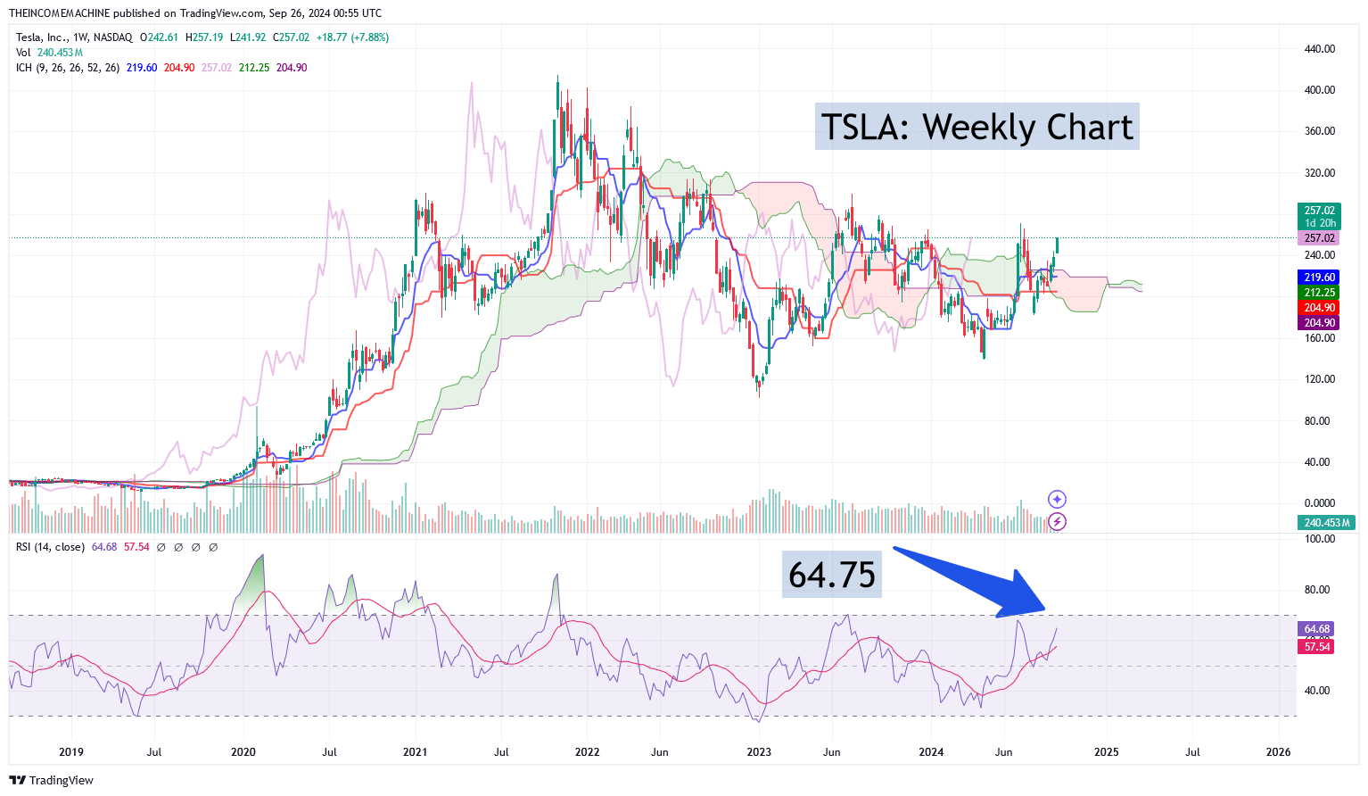 TSLA: Weekly Price Chart (Income Generator via TradingView)