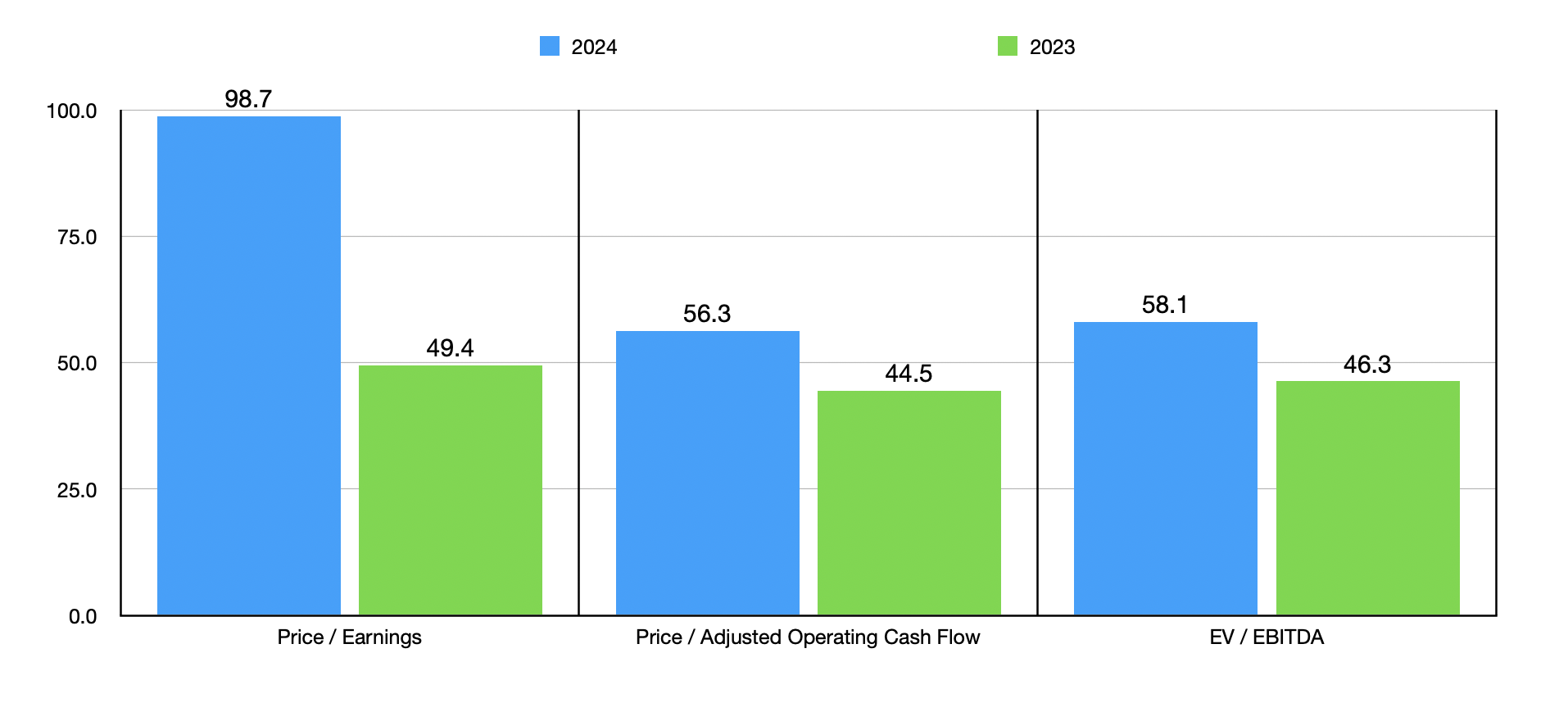 If shares of the business were trading on the cheap, I think I would be more open minded to the picture. But in the chart above, you can see how shares of the business are priced relative to earnings and adjusted operating cash flow. I also include the EV to EBITDA multiple. This chart includes historical results for 2023 and estimates for 2024. Since management does not provide any guidance for what earnings or cash flows might be for this year, the 2024 estimates were calculated by assuming that the rest of this year will look like the first half of this year relative to the same time of 2023. But even if we were to assume that fundamentals would end up reverting back to what they were last year, the stock is still incredibly pricey, especially considering the market dynamics that I already mentioned.