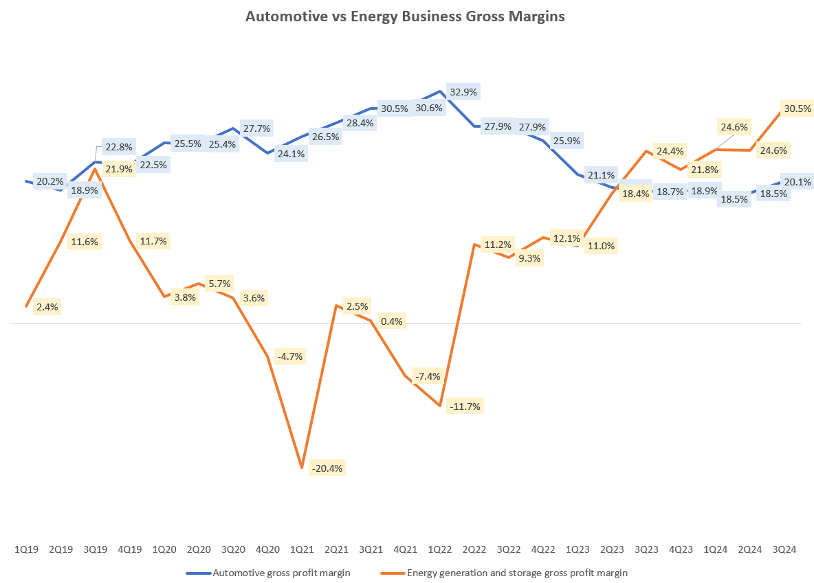 • Tesla, Inc.’s automotive sales are resilient vs. amidst a challenging backdrop in the industry. The rollout of affordable models in H1 FY25 are a key volumes catalyst.