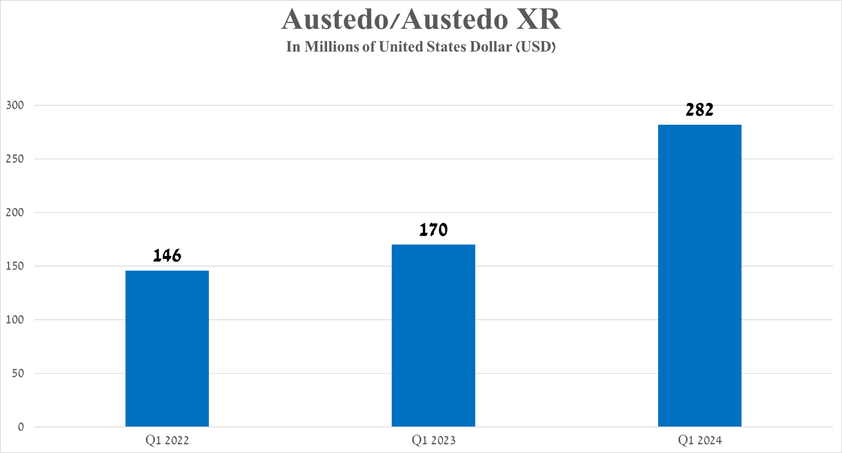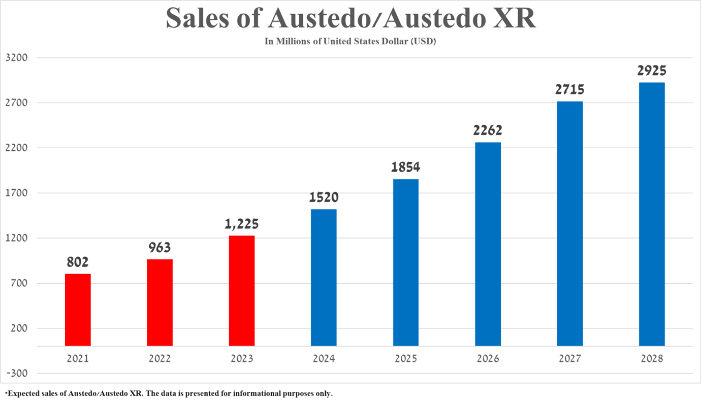 Sales of Austedo/Austedo XR were $282 million in the first three months of 2024, an increase of 65.9% year over year, primarily due to continued growing demand in the United States from patients with tardive dyskinesia and additional clinical data published at the Huntington Study Group Annual Meeting, which demonstrated that Austedo remains an effective treatment option for patients with Huntington’s disease chorea.