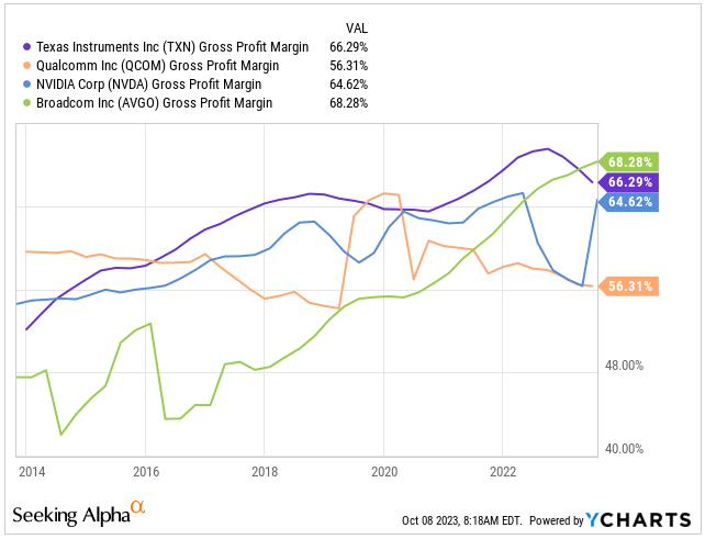 It’s interesting to note that Broadcom, since 2016, has made significant strides in expanding its margins and has recently taken the lead in this area.