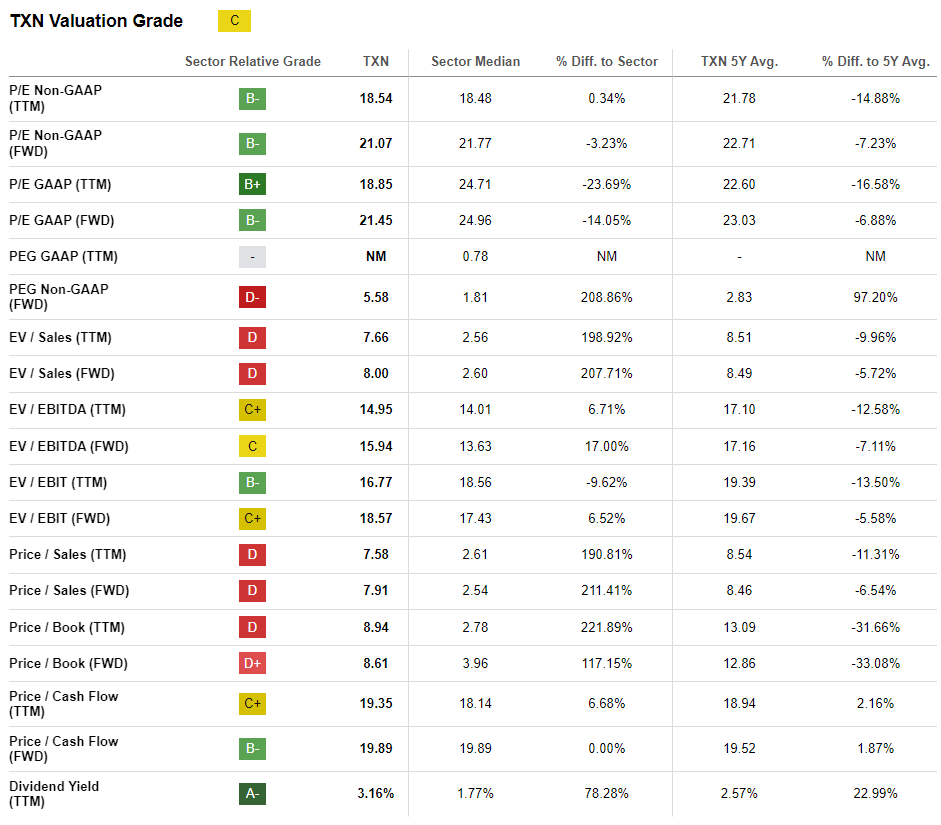 Currently, TXN appears to be slightly undervalued based on several key metrics.