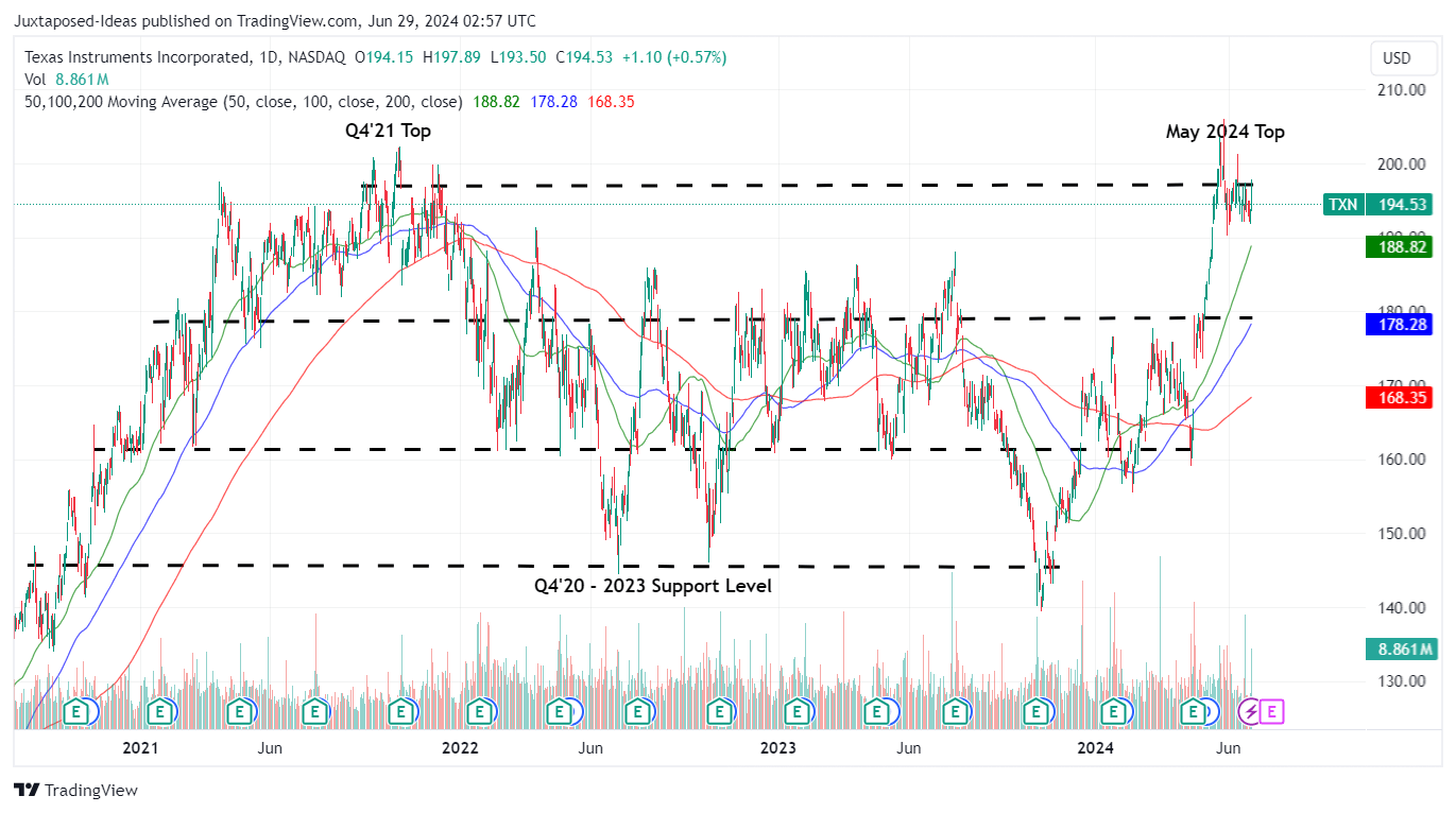 Since then, TXN traded sideways before retracing dramatically to $140s (below our recommended entry point of $150s), before rallying tremendously by +34.6% since the October 2023 bottom of $139.48 and hitting a new peak of $206.