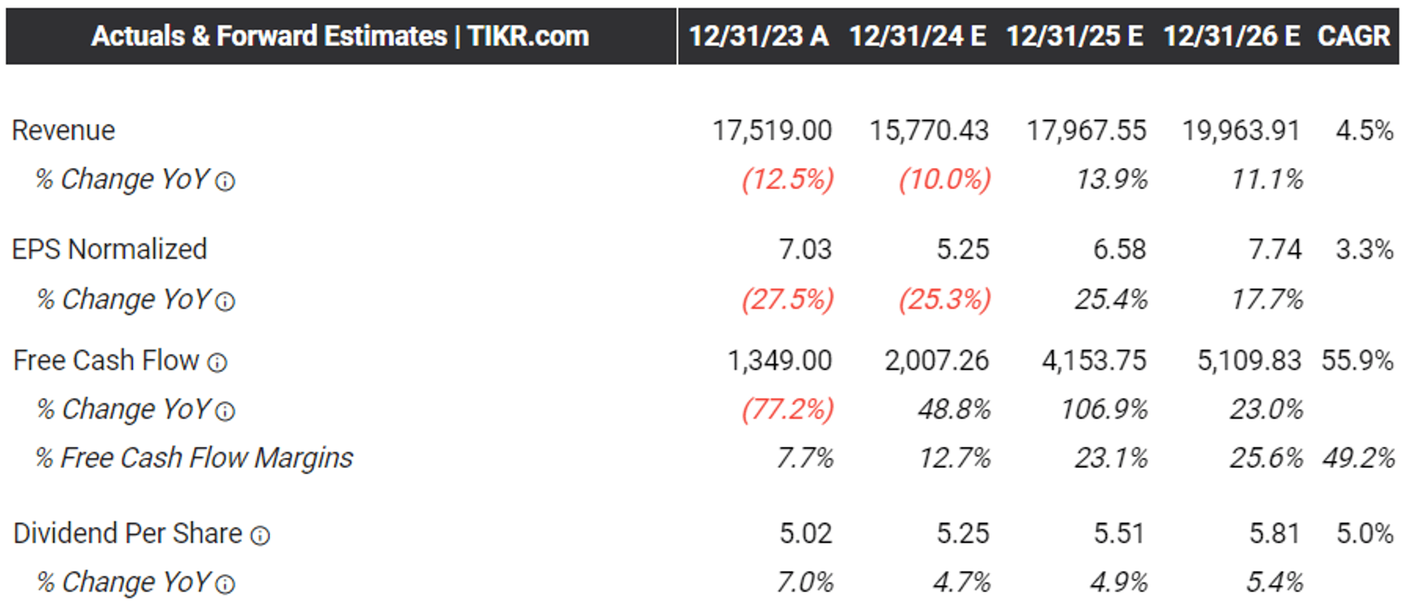 With the analog chips market showing early signs of recovery, it is unsurprising that the consensus expects FY2024 to be a trough year with things potentially recovering from FY2025 onwards, depending on TXN’s upcoming FQ2’24 performance.