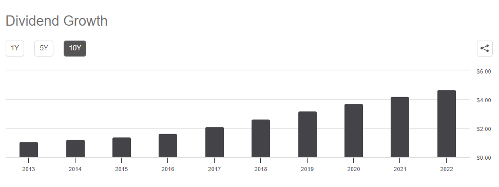 The main goal TXN of paying dividends is to attract a broader set of investors, with a focus on dividend growth and sustainability. This is exactly what you want to hear as a dividend growth investor. The dividend metrics that are used on the Seeking Alpha website looks great as well.